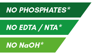 Does not contain SODIUM HYDROXIDE/EDTA/NTA and added phosphates*.
